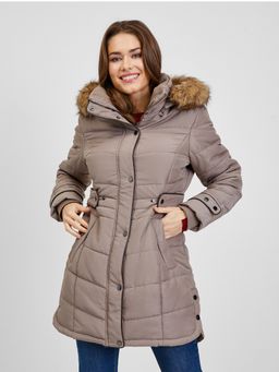 ORSAY barna női steppelt télikabát levehető kapucnival, szőrmével