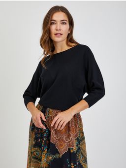ORSAY fekete bordázott női pulóver denevér ujjakkal